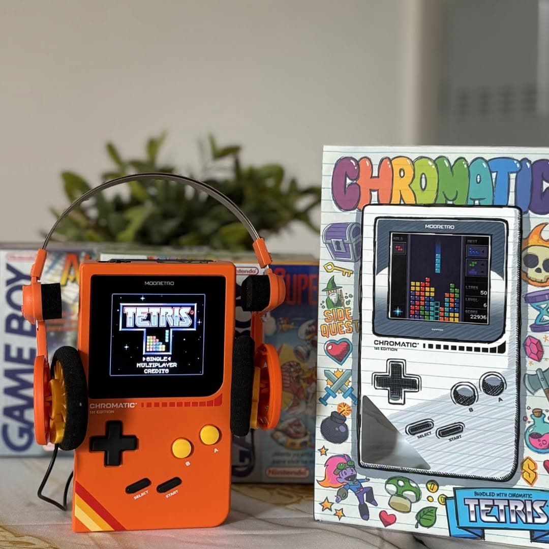 Chromatic by ModRetro is a premium FPGA-powered handheld that plays original Game Boy and Game Boy Color cartridges with pixel-perfect accuracy. Built from a sleek magnesium alloy shell and topped with a sapphire crystal screen, it combines modern durability with nostalgic design. Featuring a bright, backlit LCD, responsive controls, and support for original accessories, Chromatic delivers an authentic retro gaming experience—refined for today.